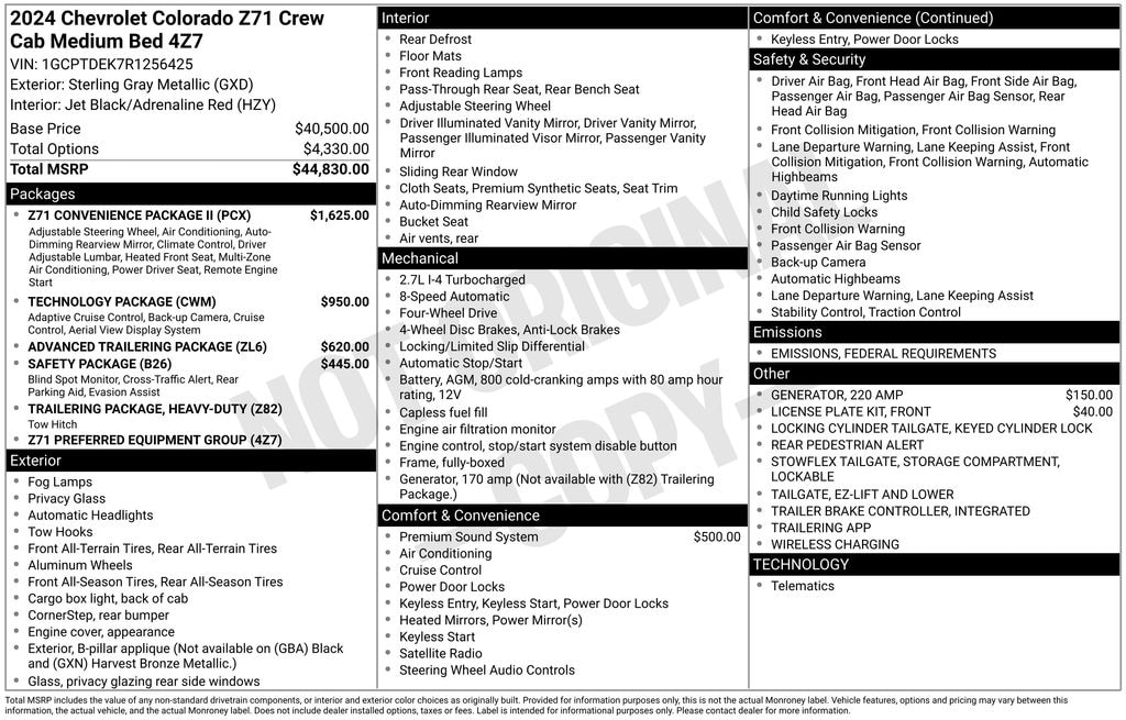 4D Crew Cab 2024 Chevrolet Colorado Z71 4WD 2.7L I4 Turbocharged DOHC 16V LEV3-ULEV50 310hp 8-Speed Automatic
