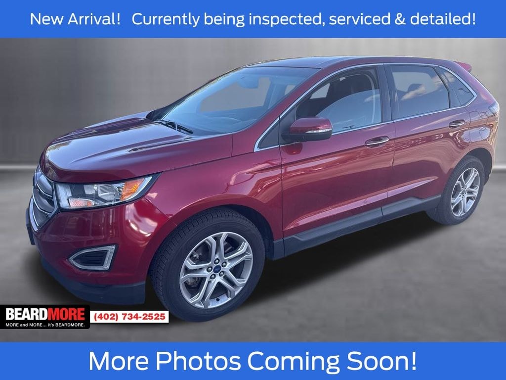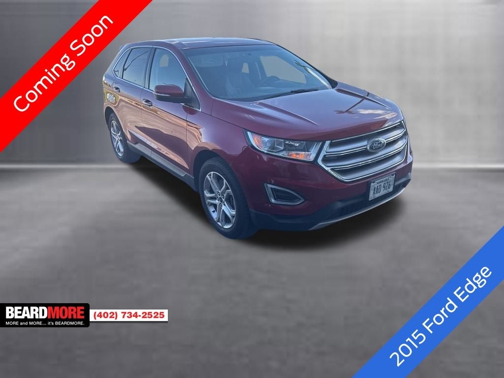 Ruby Red Metallic Tinted Clearcoat 2015 Ford Edge Titanium Recent Arrival! Certified. Odometer is 54812 miles below market average! Leather Seats, Navigation System, Backup Camera, Recent Oil Service, Fully Detailed, Heated Seats, Remote Vehicle Starter, Premium Audio, Steering Wheel Controls. .....MORE and MORE... it's BEARDMORE.