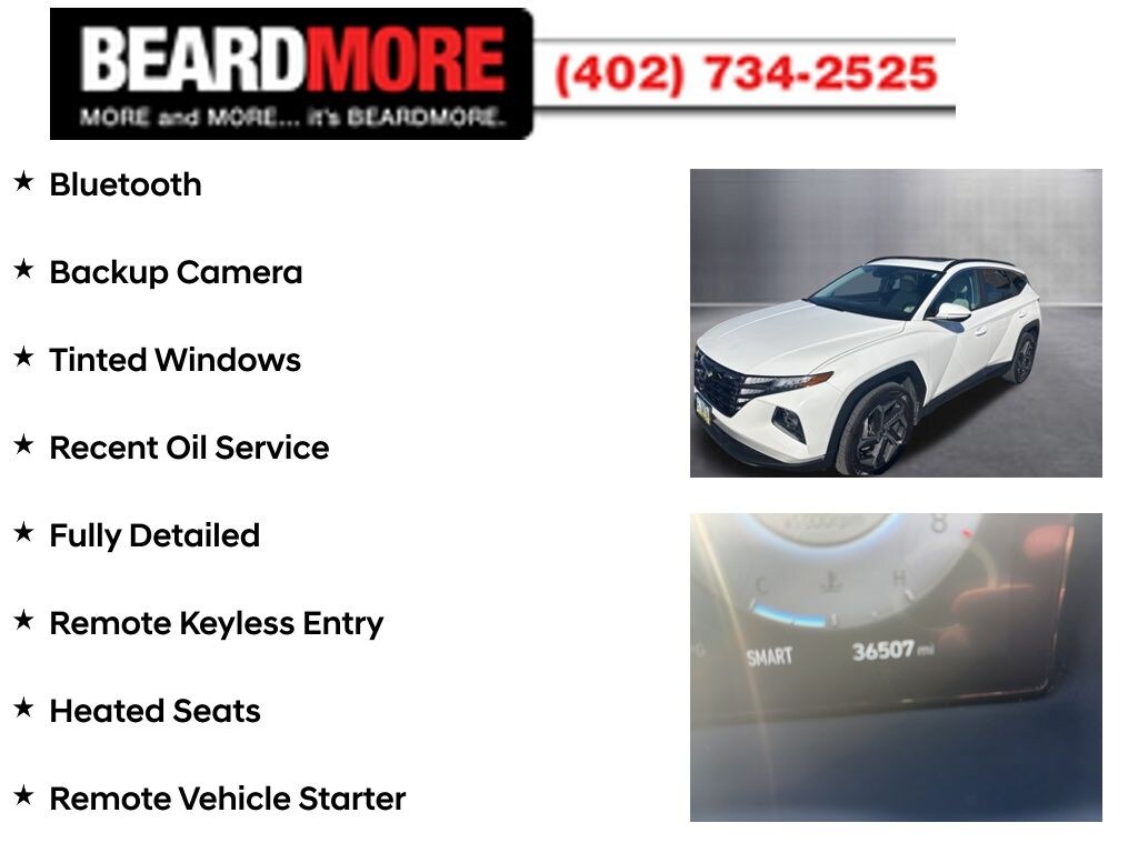 White Pearl 2024 Hyundai Tucson SEL Recent Arrival! Certified. Bluetooth, Backup Camera, Tinted Windows, Recent Oil Service, Fully Detailed, Remote Keyless Entry, Heated Seats, Remote Vehicle Starter, Premium Audio, Steering Wheel Controls, ACCIDENT FREE AUTOCHECK. .....MORE and MORE... it's BEARDMORE.
