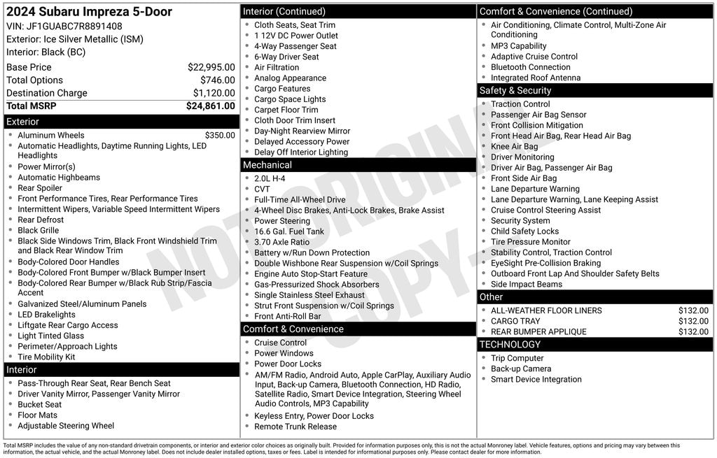 4D Hatchback 2024 Subaru Impreza AWD 2.0L DOHC CVT Lineartronic