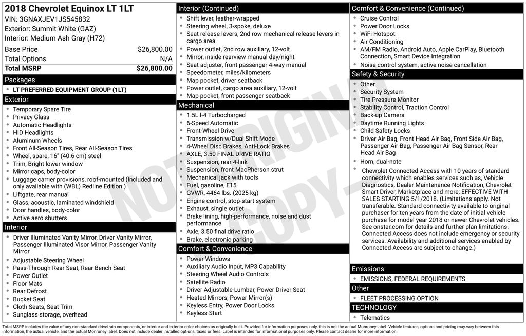 4D Sport Utility 2018 Chevrolet Equinox LT FWD 1.5L DOHC 6-Speed Automatic Electronic with Overdrive