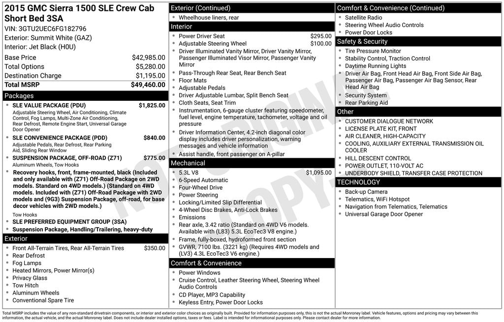 4D Crew Cab 2015 GMC Sierra 1500 SLE 4WD EcoTec3 5.3L V8 6-Speed Automatic Electronic with Overdrive