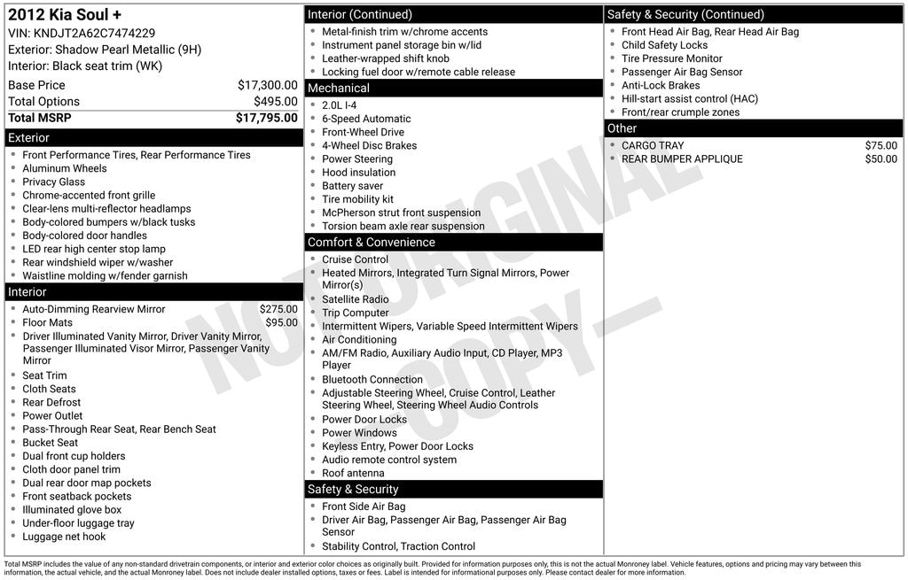 4D Hatchback 2012 Kia Soul Plus FWD 2.0L I4 MPI 6-Speed Automatic