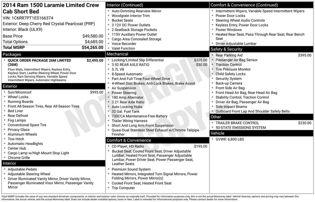 4D Crew Cab 2014 Ram 1500 Laramie Longhorn 4WD HEMI 5.7L V8 Multi Displacement VVT 8-Speed Automatic