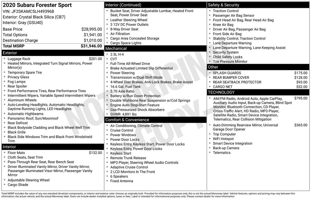 4D Sport Utility 2020 Subaru Forester Sport AWD 2.5L 4-Cylinder DOHC 16V VVT Lineartronic CVT