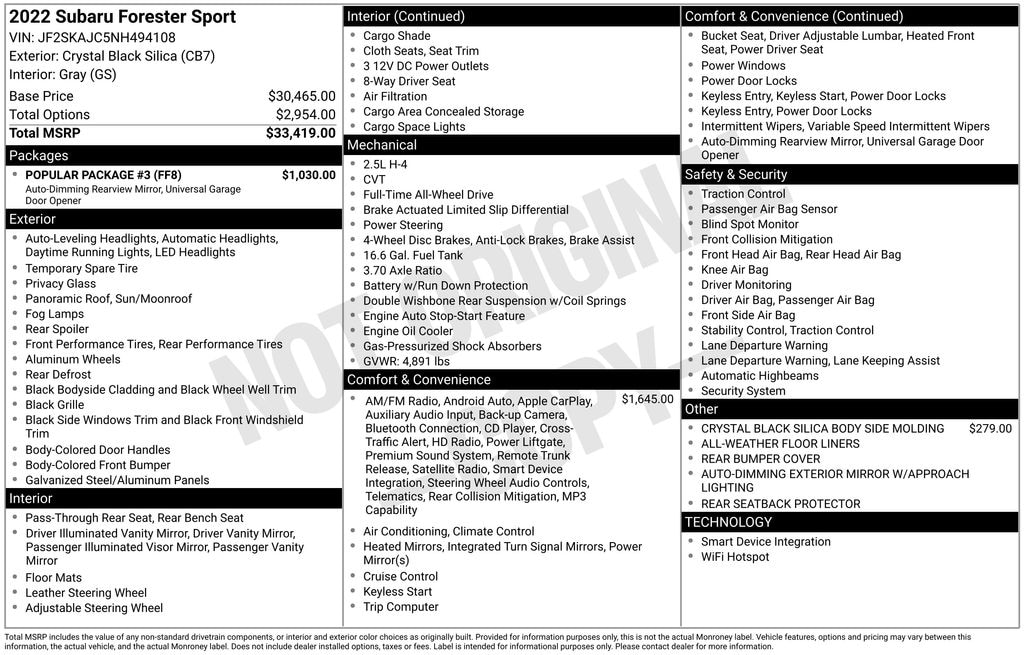 Crystal Black Silica 2022 Subaru Forester Sport Certified. Odometer is 10146 miles below market average! Sunroof/Moonroof, Bluetooth, Backup Camera, Recent Oil Service, Fully Detailed, Remote Keyless Entry, Heated Seats, Premium Audio, Steering Wheel Controls, ACCIDENT FREE AUTOCHECK. .....MORE and MORE... it's BEARDMORE.