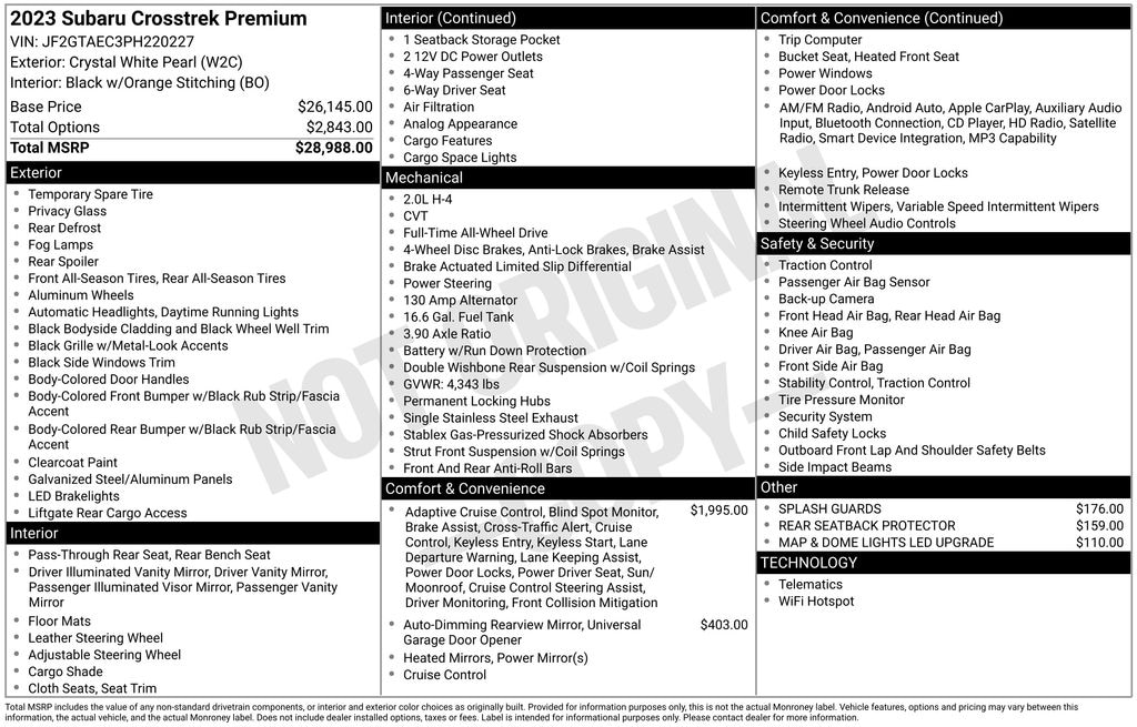 Crystal White Pearl 2023 Subaru Crosstrek Premium Certified. Odometer is 18948 miles below market average! Sunroof/Moonroof, Bluetooth, Backup Camera, Recent Oil Service, Fully Detailed, Remote Keyless Entry, Heated Seats, Steering Wheel Controls, ACCIDENT FREE AUTOCHECK. .....MORE and MORE... it's BEARDMORE.
