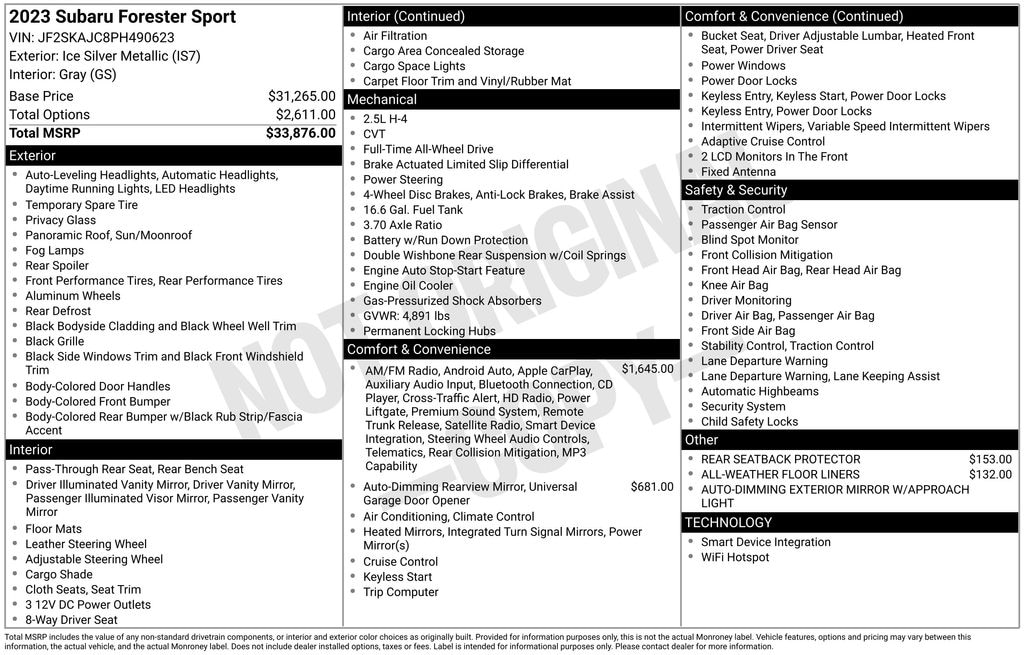 4D Sport Utility 2023 Subaru Forester Sport AWD 2.5L 4-Cylinder DOHC 16V Lineartronic CVT