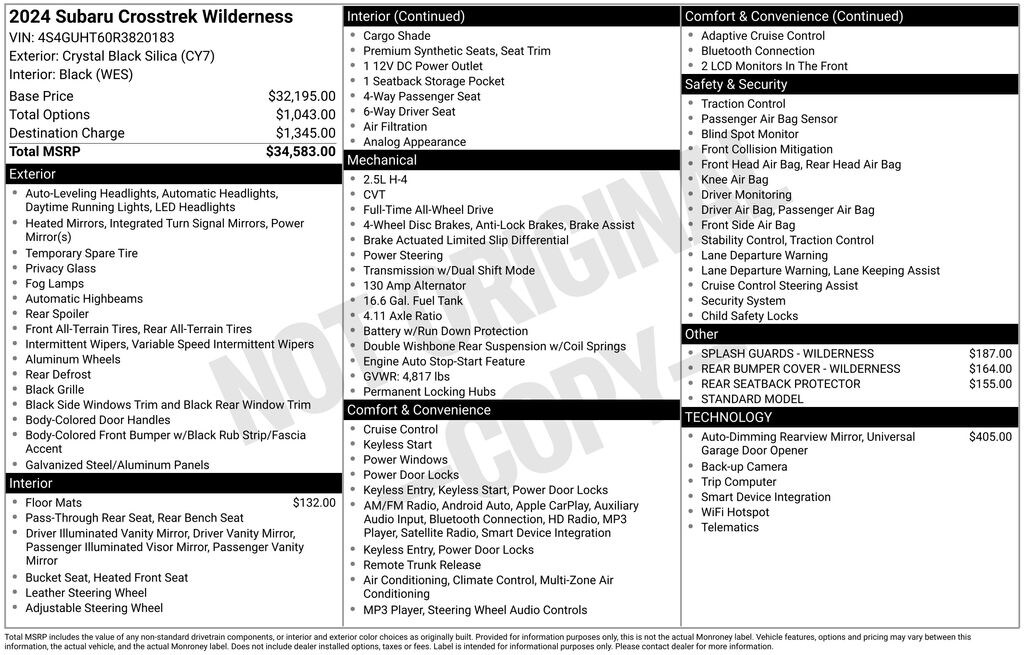 Crystal Black Silica 2024 Subaru Crosstrek Wilderness Recent Arrival! Certified. Leather Seats, Bluetooth, Backup Camera, Recent Oil Service, Fully Detailed, Remote Keyless Entry, Heated Seats, Steering Wheel Controls, ACCIDENT FREE AUTOCHECK. .....MORE and MORE... it's BEARDMORE.